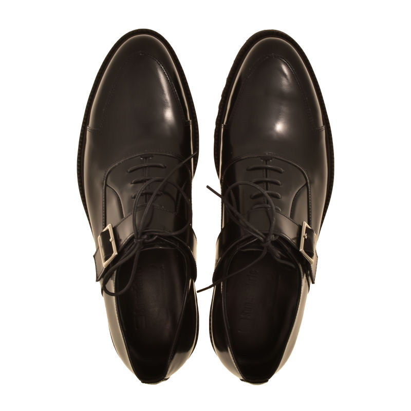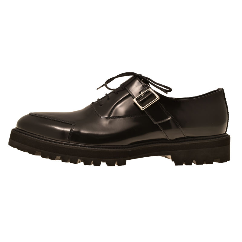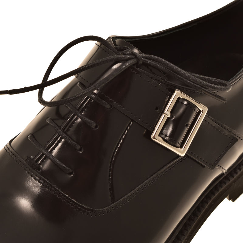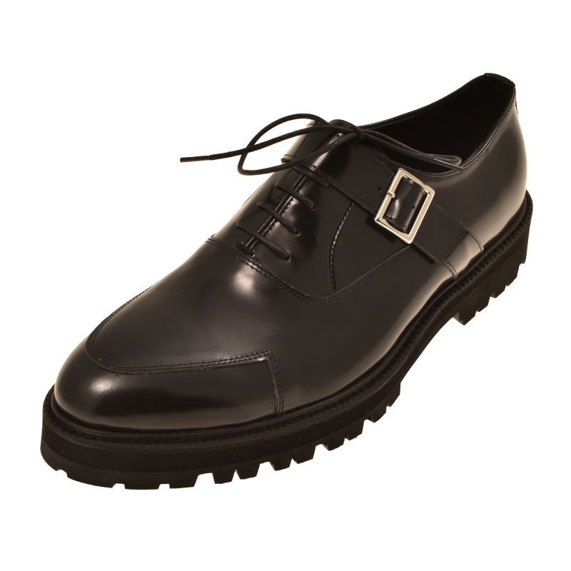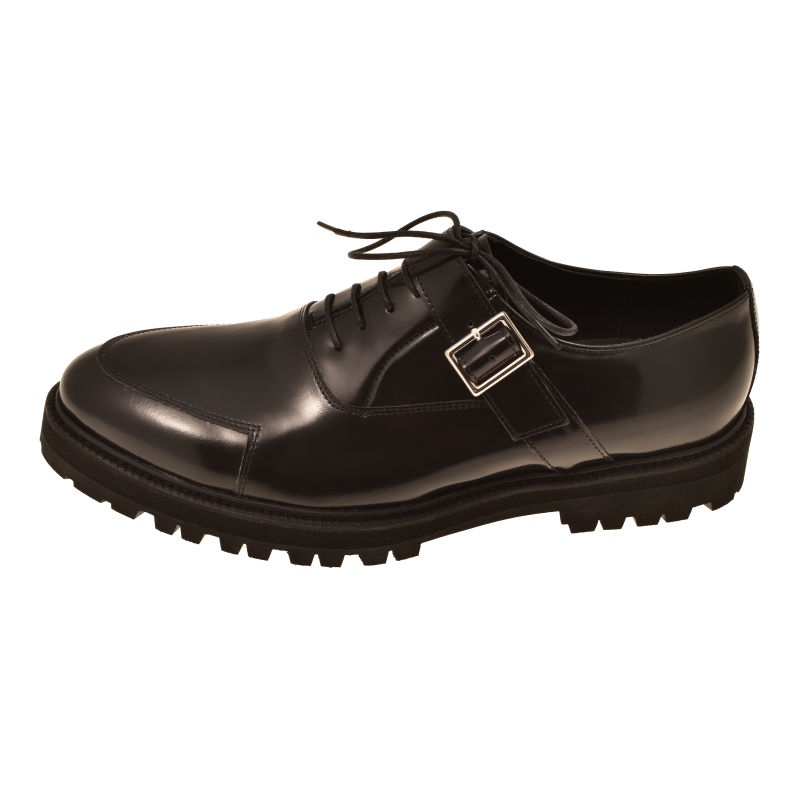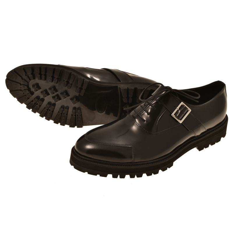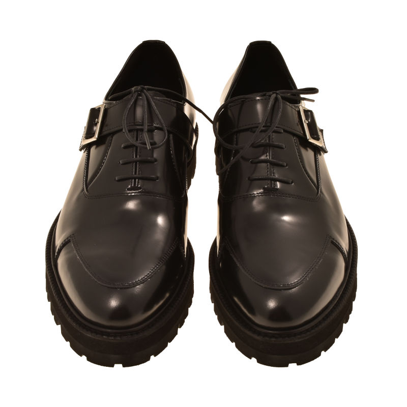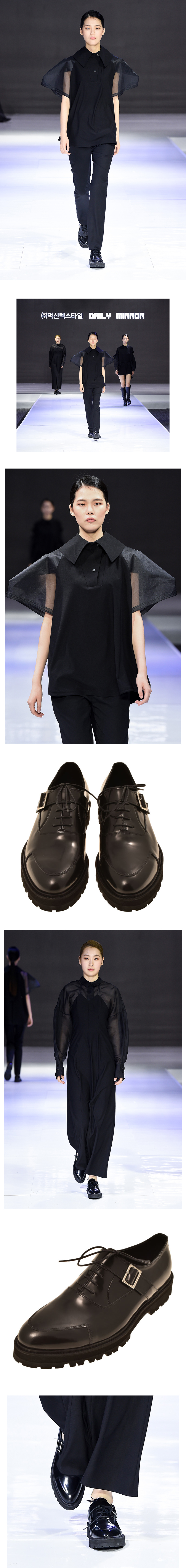 패션 브랜드 데일리 미러의 아이덴티티를 잘 보여주는 구두 입니다. 데일리 미러 김주한 디자이너의 서울 패션 워크 2019FW 정식 콜렉션 데뷰 무대를 기념 하기 위해 제작 되었습니다. 신발 앞쪽 팁 부분 독특하게 구성된 절개선과 발등 부분 스트랩이 시크하고 유니크한 분위기를 연출 합니다. 고급스러운 가죽으로 제작 되어 언제 어디서나 세련된 룩을 연출 합니다. 코만도솔을 적용해 겨울에도 잘 미끄러 지지 않으며, 언제 어디서나 안전한 보행을 약속 합니다.